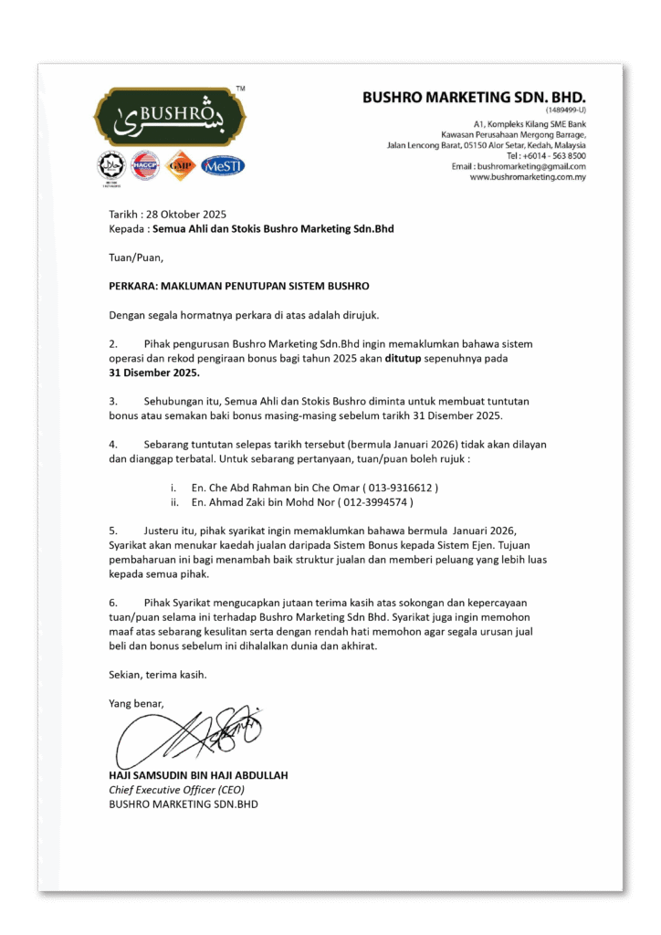 Bushro Marketing adalah gabungan usahawan berpengalaman dan usahawan berpengaruh